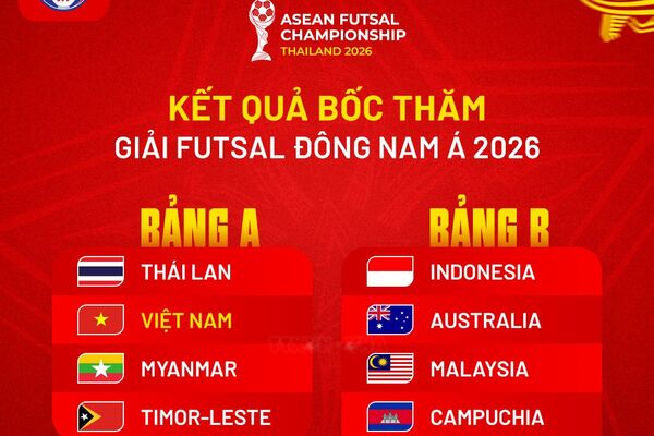 icon play Đội tuyển futsal Việt Nam chung bảng với Thái Lan tại giải Đông Nam Á 2026 01/03/2026 17:05