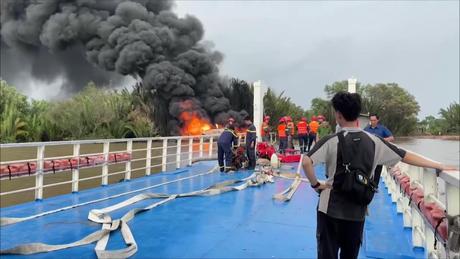 Cháy ghe trên sông Cần Giuộc làm 3 người bị thương