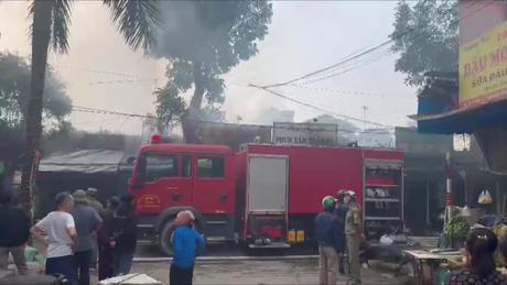 Cháy lớn chợ Xanh Định Công lúc rạng sáng, nhiều gian hàng bị thiêu rụi