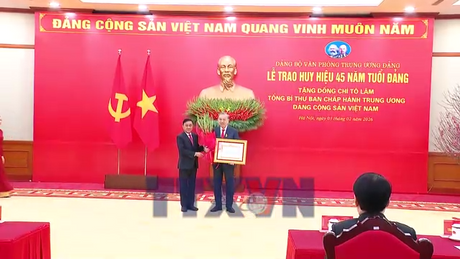 Trao Huy hiệu 45 năm tuổi Đảng tặng Tổng Bí thư Tô Lâm