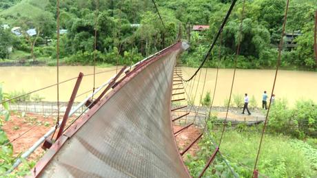 Lật cầu treo Pa Thơm, 3 người rơi xuống sông