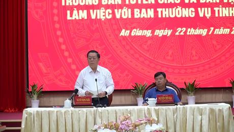 Trưởng Ban Tuyên giáo và Dân vận Trung ương làm việc với Tỉnh ủy An Giang