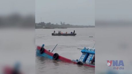 Cảnh sát đường thủy đưa thuyền viên tàu bị lật vào bờ