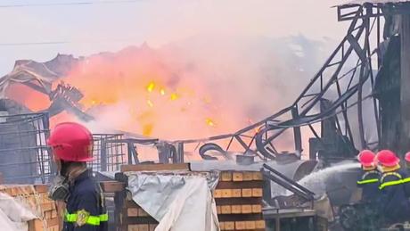 Vẫn đang cháy lớn tại xưởng tái chế phế thải ở Hưng Yên