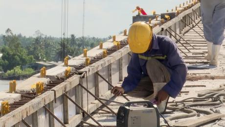 Nhộn nhịp không khí lao động trên công trường cầu Đại Ngãi 2