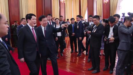 Lễ đón chính thức Chủ tịch nước Lương Cường thăm cấp Nhà nước đến Lào