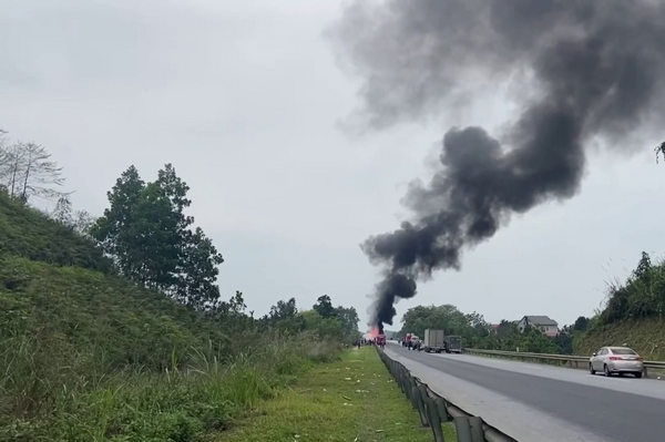 Cháy xe chở dầu trên cao tốc Nội Bài - Lào Cai