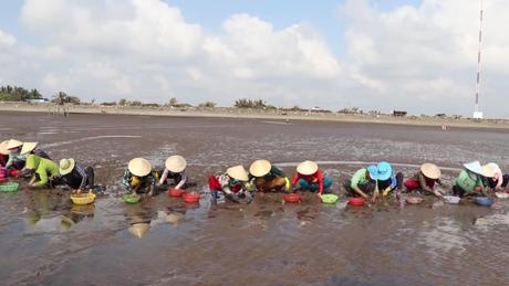 Nhộn nhịp mùa thu hoạch nghêu ở biển Gò Công