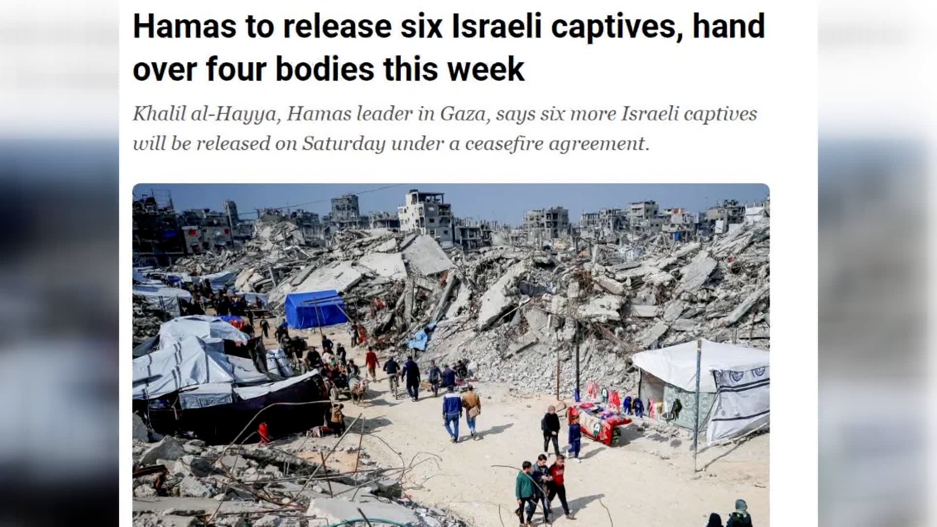 Hamas tuyên bố sẵn sàng thả toàn bộ con tin Israel còn lại 19/02/2025 18:25 Hamas tuyên bố sẵn sàng thả toàn bộ con tin Israel còn lại