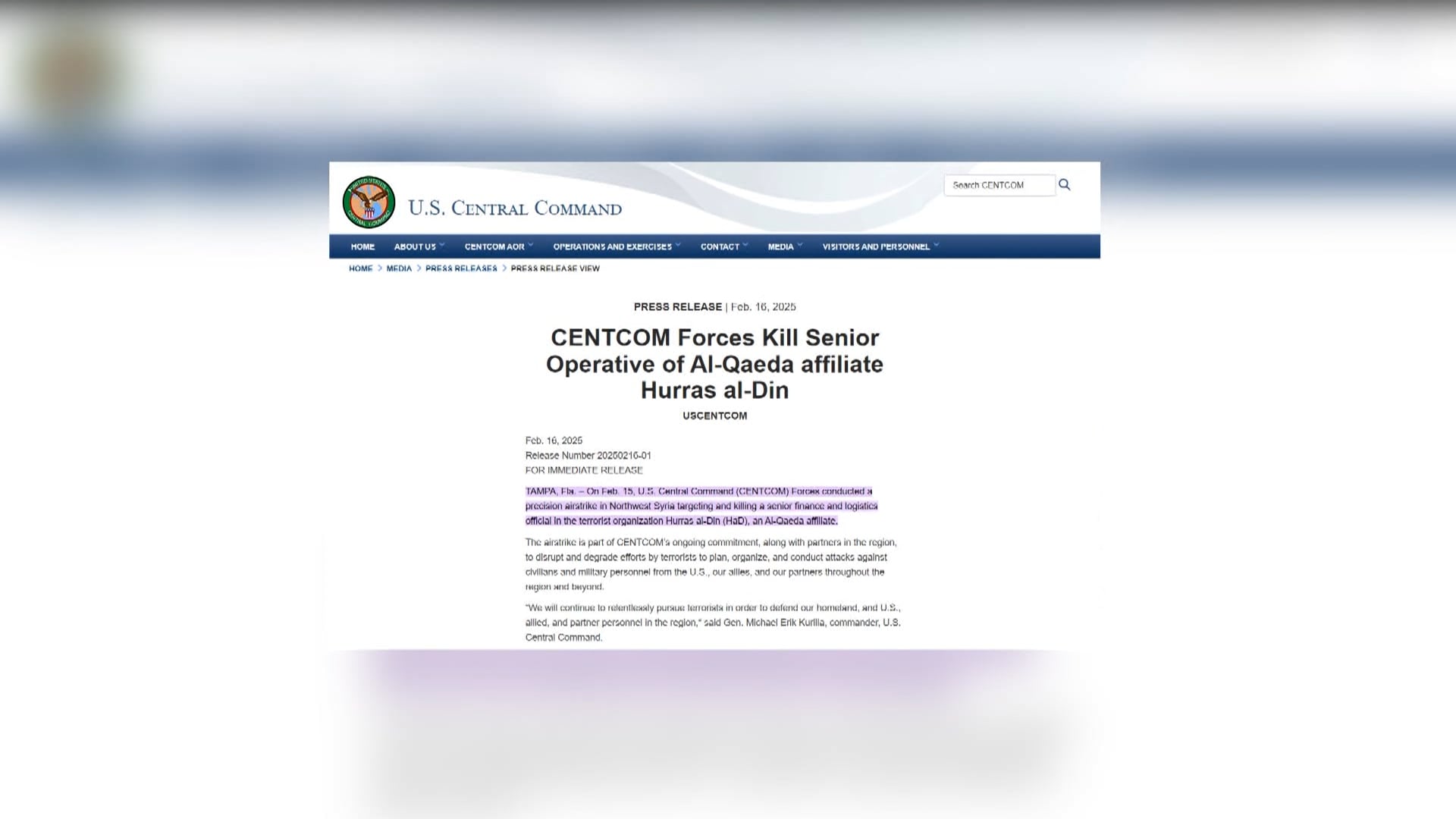 Mỹ tiêu diệt thành viên cấp cao của tổ chức khủng bố Hurras al-Din 17/02/2025 19:23 Mỹ tiêu diệt thành viên cấp cao của tổ chức khủng bố Hurras al-Din