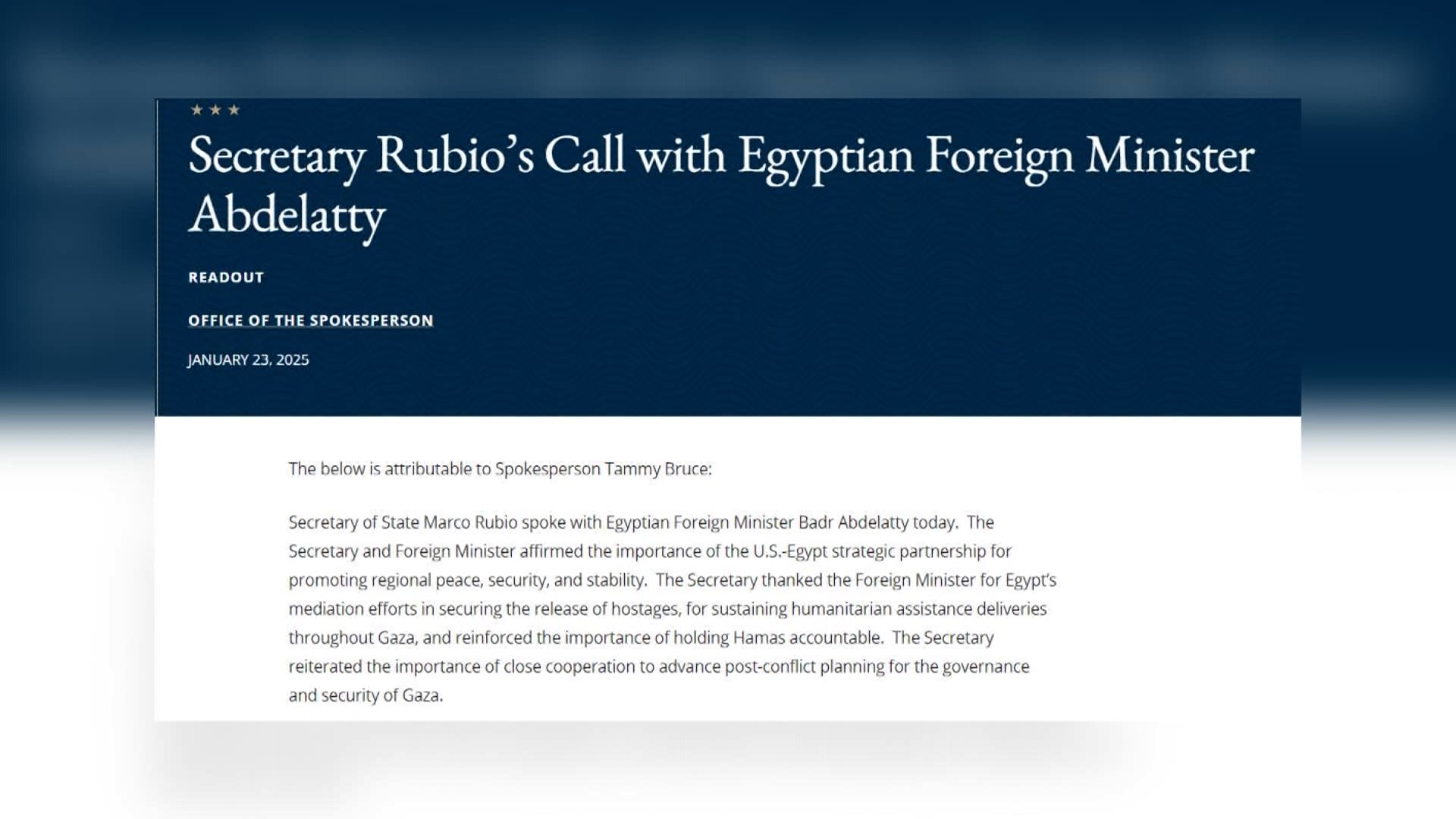 Ai Cập và Mỹ tăng cường hợp tác vì sự ổn định ở Trung Đông 25/01/2025 19:44 Ai Cập và Mỹ tăng cường hợp tác vì sự ổn định ở Trung Đông