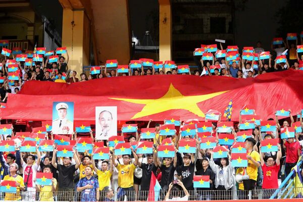 Biển cờ rực rỡ trên sân Hàng Đẫy chào mừng 50 năm Ngày Giải phóng miền Nam, thống nhất đất nước 26/04/2025 13:18 Hàng nghìn CĐV Thể Công Viettel và Sông Lam Nghệ An tạo nên biển cờ rực rỡ để chào mừng 50 nămNgày Giải phóng miền Nam, thống nhất đất nước.